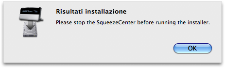 When doing an "upgrade" of SC on the Mac, a message dialog appears "Please stop the SqueezeCenter before running the Installer." When I click OK, then open the PrefPanel I see that the server has already been stopped. It appears that the Mac installer IS stopping the service on its own, but presenting this dialog to the user anyway. If I click OK on the dialog, then wait 15 seconds, and try the install again, it works with no errors.
