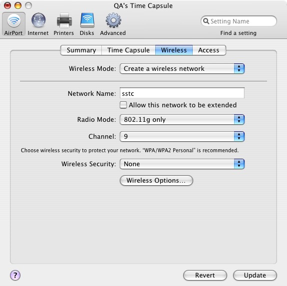 Created attachment 3063 [details] Time Capsule wireless options screen