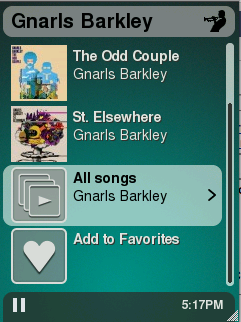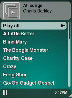 Created attachment 3400 [details] menu item for "all songs" in an artist->album listing note: appears at the bottom of the list just above add/delete-to-favorites item. The "Play All" item remains at the top of the list. Hitting the center button on the controller will spawn a new window with the track listings, sorted by title.