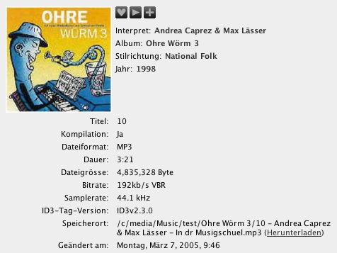 Hello, I installed the new SqueezeCenter 7.0 on my ReadyNAS NV+ running RAIDIATOR 4.01. After a clear and full rescan of my song library, it seems that there is a problem with .mp3 files (and only with .mp3) when you have accents in tags (like in french language, you have many accents on letters). For example: Song located in c:\\media\music\Rêve Bohème\Best of Rêve Bohème\1-01 - Just One Of Those Things.mp3 with the following values in tags: - artist: Rêve Bohème - title: Just One Of Those Things - album: The Best Of Rêve Bohème - track: 1 - year: 2006 - genre: Jazz After a rescan, as result, I have a "no artist" entry when I browse by artist and "no album" when I browse by album. If I remove all accents from tags and rescan, all is OK. As I like french songs, it is really a big problem (I have more than 3000 songs with accents in tags!). Please, can you solve the problem as soon as possible? THANK YOU!!!