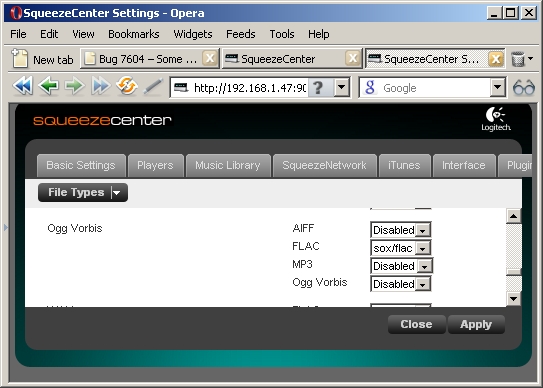 (In reply to comment #6) > (In reply to comment #0) > > > > Stream plays fine if SlimServer runs on other Linux Computers and on XP PC. > > > > Stefan, is this only true if you are using server side decoding? That is to > say that you have Ogg Vorbis to Ogg Vorbis disabled in File Types? > > Are you able to do server side decoding of Ogg Vorbis with your DiskStation? > Yes, it plays fine only on Win/Linux PC for server side decoding. Yes, I am able to do server side decoding on NAS based Server, but it stotters for some reason. See att. for details Tnx, sg