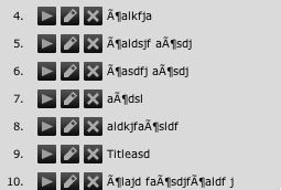 I'm able to add arbitrary UTF-8 characters to my playlist titles and they show up in the web UI correctly, will attach example with greek letter phi. Are the umlauts in the attached example in some other encoding?