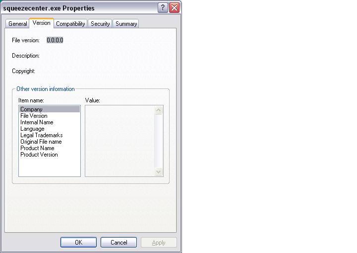 Created attachment 3351 [details] image The Windows Version of SC does not properly report .EXE version strings. See attached image. We should include the proper stings for all versions of our applications. We are currently missing the following strings for all .EXE files included in SC 7.0.1 Company File Version Language Legal Trademarks Product Name Product Version