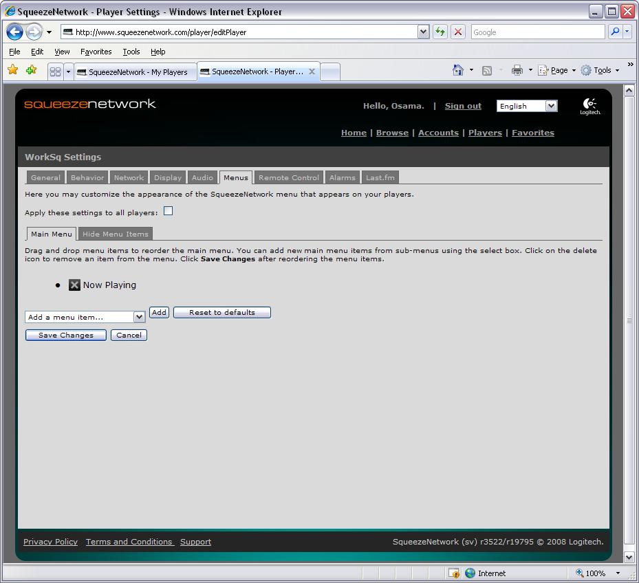 SB3 Player Menus options under Squeezenetwork causes strange behaviors