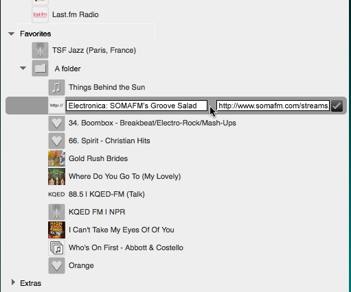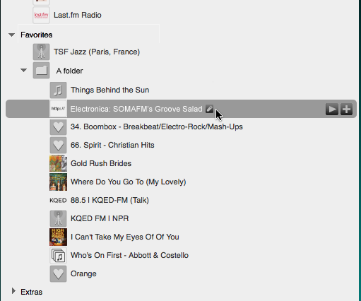 > It might make sense to allow the editing of the title, url and hot key > numbering on that page rather than in place. Just click on the title and edit > there. Dean, I'm sorry, but I have to disagree a lot with you in our Favorite issue... While I do agree that showing favorites details is a bit useless, I doubt edit should be the default action. How often do you edit a Favorite? How often do you play it? I never change them (rather remove and add another one). But some of them I play every day. The default action for the bar should rather be play than edit.