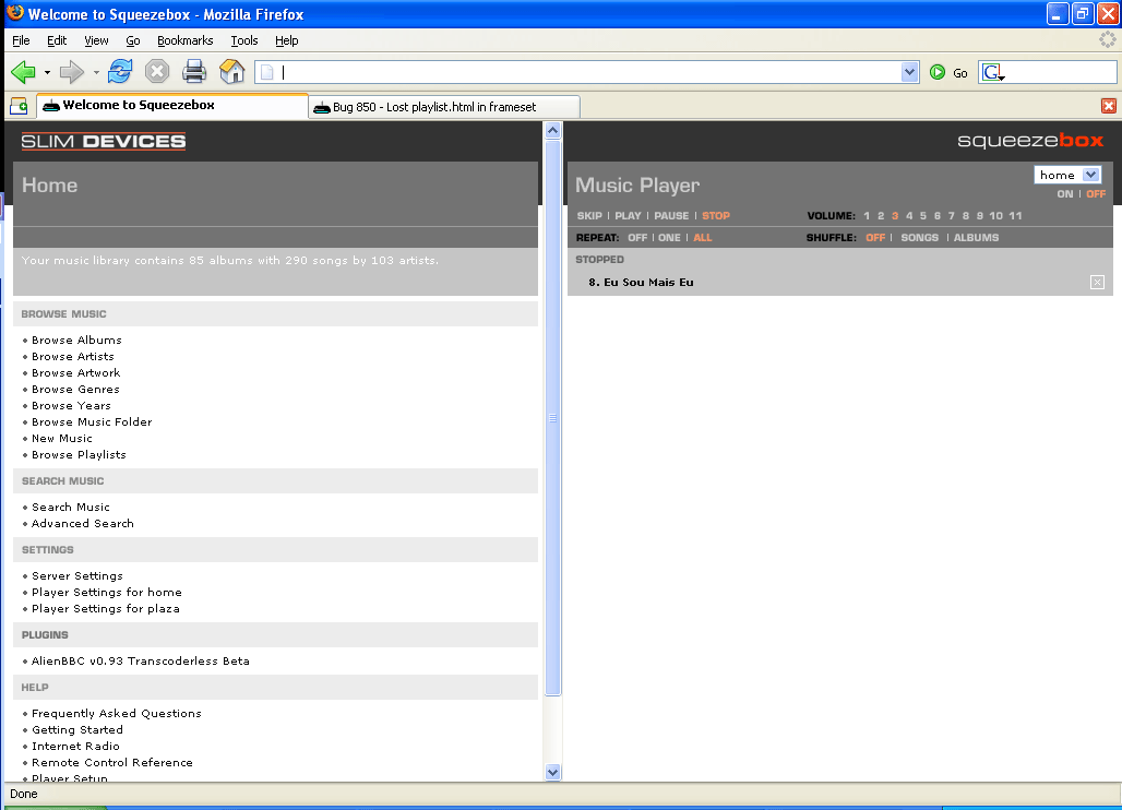 Created attachment 283 [details] screenshot of web ui without playlist this happens only in Firefox and only when using the router's external IP (which is NAT-redirected to another local machine running slimserver). When using the slimserver's local network address, this doesn't happen.