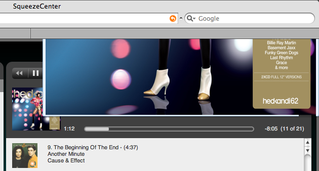 Newer version of Squeeze Center now shows the image preview/pop-up: SqueezeCenter Version: 7.1 - 21576 @ Tue Jul 8 01:04:57 PDT 2008 - Windows XP - EN - cp1252 However, there are rendering issues with the position of the image plus the border effect drawn around it. Simply moving the browser window left and right (without resizing or moving it vertically) causes the image to get cut off and displayed under the top part of the browser. This happens when there's plenty of space on the screen for it to appear where it would in the other example. See newly attached images.
