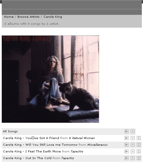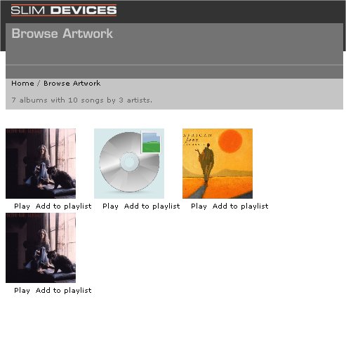 I now have some placeholder images appearing instead of the actual cover art. On some of them, if I click on the image I am taken to the page for that album, with the correct cover art displayed, on others I am taken to a blank page with "0 albums with 0 songs by 0 artists" This is with the Default skin and Fishbone in Internet Explorer in Windows and Mozilla on Linux.