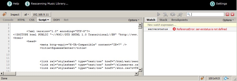 Created attachment 4442 [details] firebug screen capture I managed to catch it with Firebug running. Michael, is this what you were looking for - a watch of the expression 'serverstatus'? There were no JS errors that I could tell.